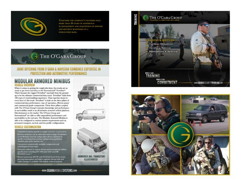The O’Gara Group’s imagery was all about high technology and confident execution. The defense contractor has to exude know-how if they are to win contracts, so the pressure is high to have the best looking materials that convey a unified message. Done with InDesign, Photoshop, and Illustrator.